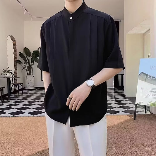 V-neck Botton Sleeveless Top And Loose Straight Pants
