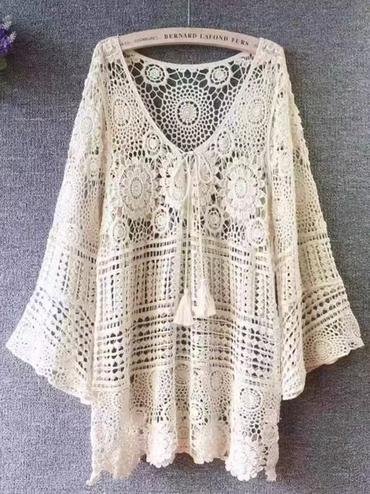 Women's Lace Crocheted Hollowed Out Sun Protective Blouse