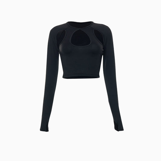 Round Neck Long Sleeve Cut Out Crop Top