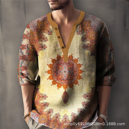 Printed Jacquard/Linen Sweater