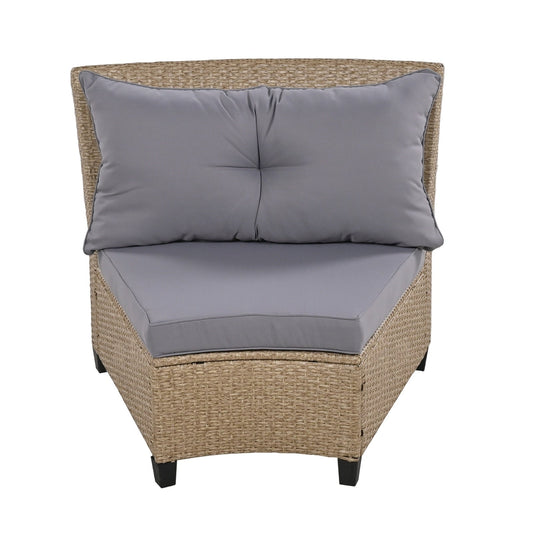 U Style 6-Person Fan-Shaped Rattan Set With Cushions Table