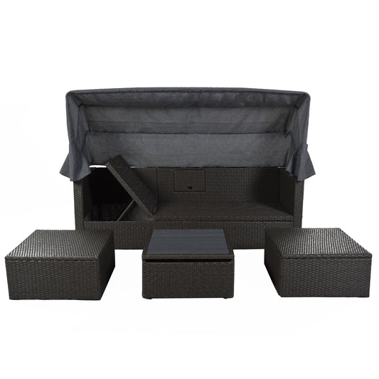 U STYLE Patio Furniture Set Daybed W Retractable Canopy Wicker