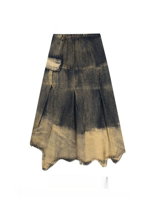 Industry Distressed Raw Edge Denim Skirt