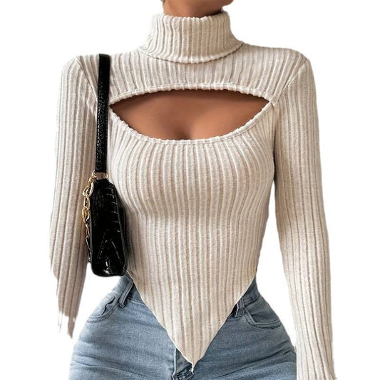 Long-sleeved Knitted Striped Short Top