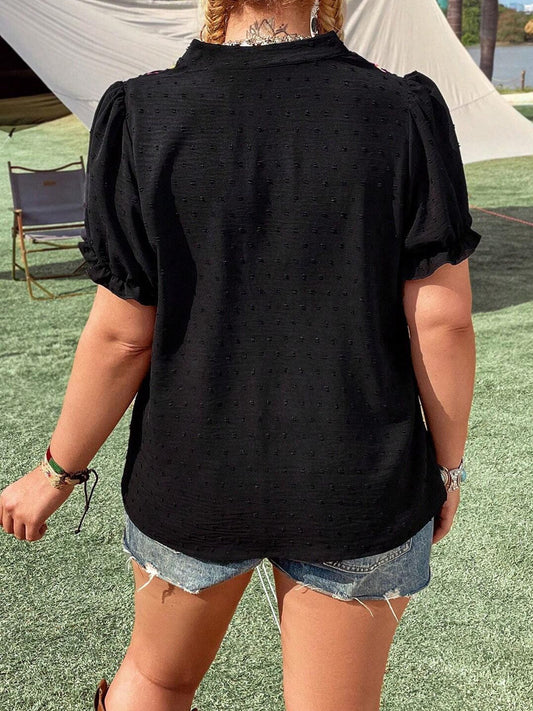 Floral Embroidery Summer Casual Short Sleeve V-Neck
