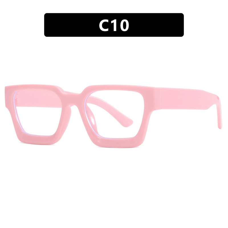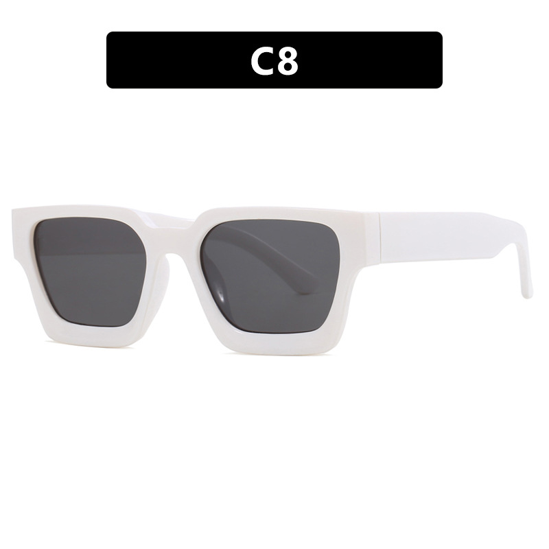 Colors: Bright black with all-gray lenses, pink frame with gray lenses, green frame with green lenses, black upper frame with bean-pattern design and dual-gray lenses, leopard print with dual-taupe lenses, bright black with taupe lenses, bright black with yellow lenses, pure white with gray lenses, bright black-and-white bicolor lenses, pink frame with white lenses, green frame with white lenses, black upper frame with bean-pattern design and dual-white lenses, leopard print with white lenses, transparent gray-and-white bicolor lenses